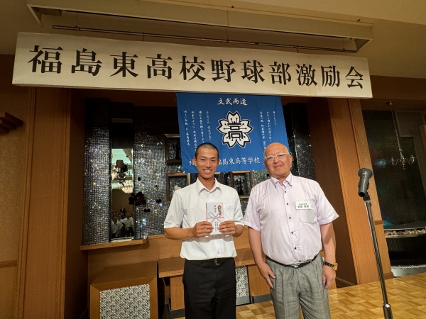 席上、7月12日の初戦に向けて同窓会から激励金を送りました。